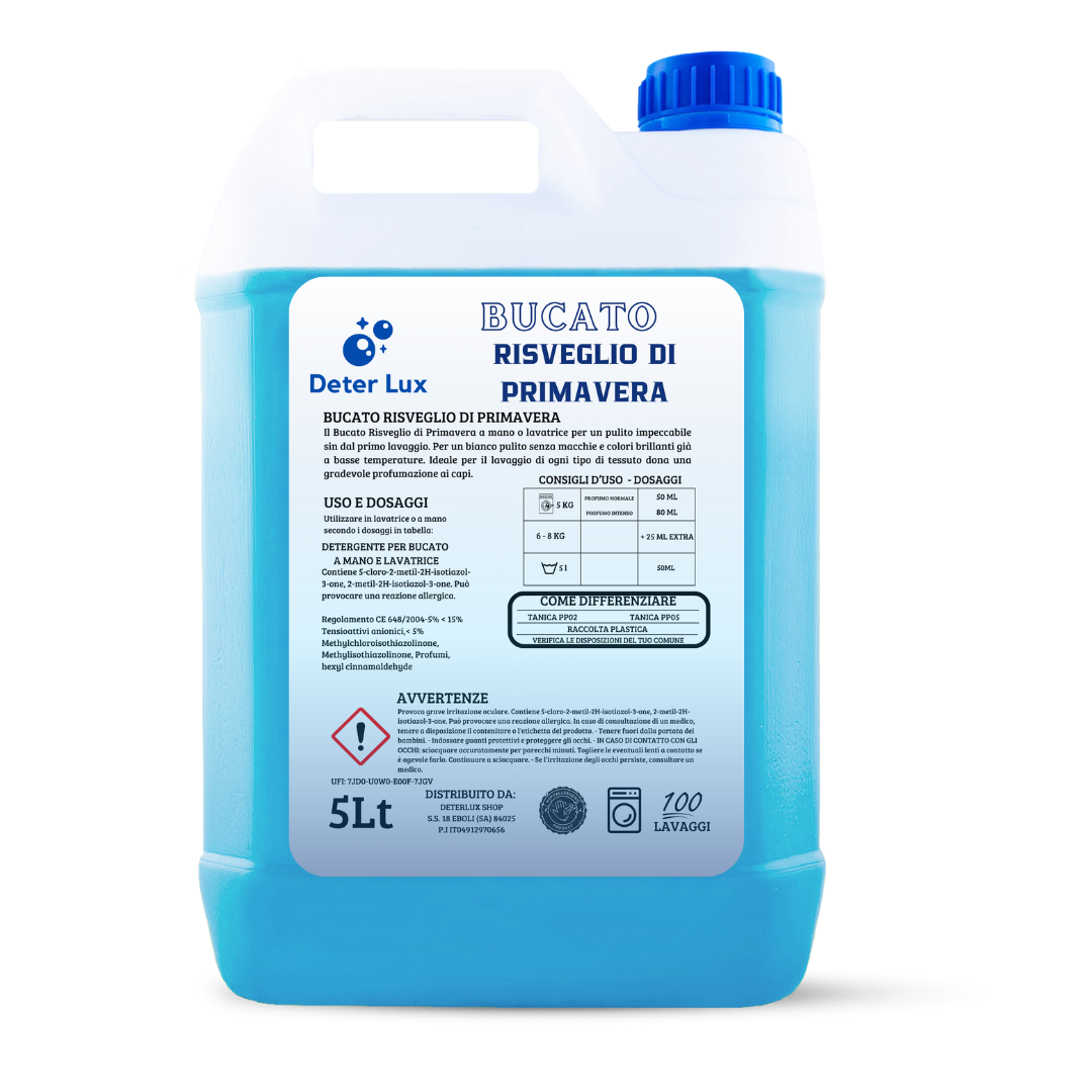 Il Detersivo Liquido Risveglio di Primavera Deter Lux offre un pulito perfetto già al primo lavaggio. La sua profumazione fresca e leggera lascia i capi morbidi e piacevolmente profumati, donando una sensazione di primavera tutto l'anno.